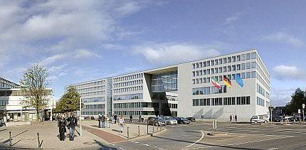 Nagrodzony w 2006 roku projekt architektów z Architekten agn Niederberghaus & Partner GmbH, Ibbenbüren, którzy zajmowali się również generalnym projektowaniem, z góry przypomina paragraf i cechuje się przejrzystością, otwartością i jasnością. Centrum sądownicze, które pod względem architektonicznym nie zamyka się, tylko jest otwarte dla wszystkich obywateli staje się źródłem pozytywnych impulsów w dzielnicy Oberbilk.